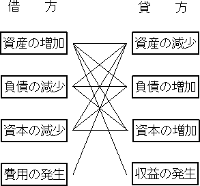 原理的に、費用の発生−収益の発生、費用の発生−資本の増加、収益の発生−資本の減少という3つの組み合わせはありません。