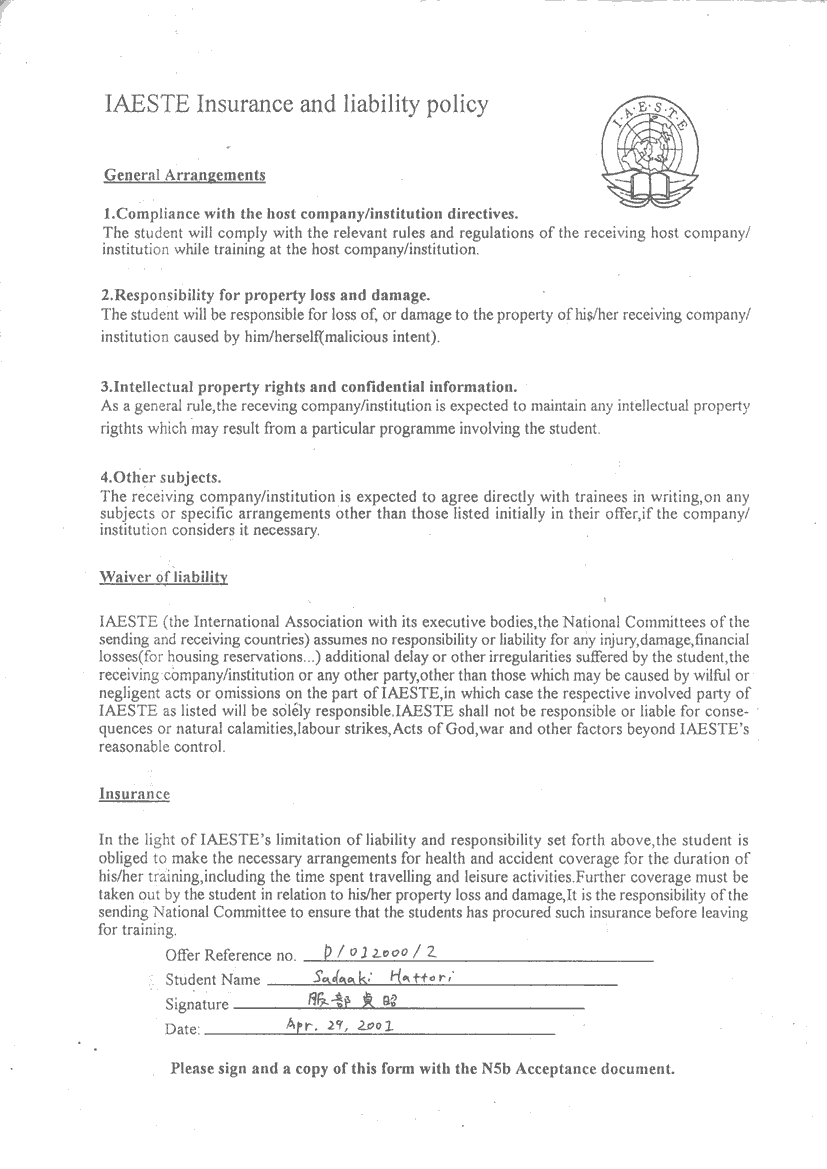 イアエステ日本委員会へ提出した研修報告書です。研修に関わる以下の具体的内容が書かれています。おそらく研修に関する内容がもっとも詳しくまとまって書かれています。