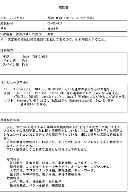 所属大学、取得単位、語学レベル、希望研修期間などの具体的記述
